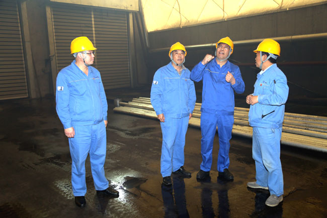 10月25日,集團公司黨委書記、董事長李躍民分別到萬基鋁業(yè)一公司和二公司、石墨公司實地察看環(huán)保超低排放改造項目進展情況,到發(fā)電公司察看了30萬千瓦機組煤場氣膜封閉工程完工后運行情況。每到一處,他詳細詢問了環(huán)保項目施工進度情況和存在的問題,要求各相關(guān)單位一定高度重視、克服困難、保證質(zhì)量,加快進度,確保項目按計劃完成,實現(xiàn)達標(biāo)排放,為企業(yè)可持續(xù)發(fā)展提供保障;要求發(fā)電公司針對汽車尾氣突出問題聯(lián)系設(shè)計部門,盡快拿出解決方案。