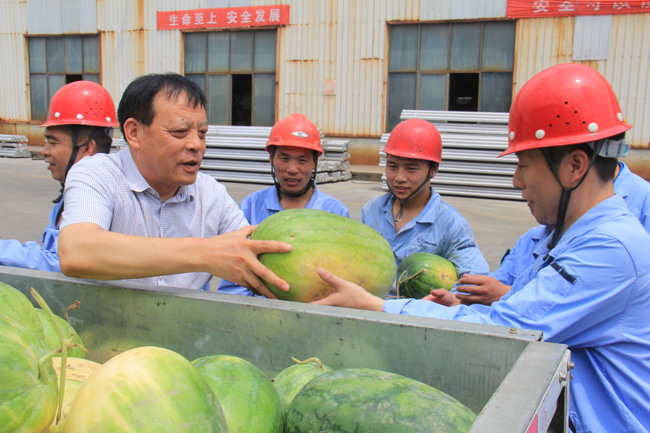 7月16日,新安縣人大副主任、縣總工會主席王保敏,黨組書記王新營,副主席梁松獻在集團公司總經(jīng)理郭峰,黨委副書記、工會主席王宏偉等的陪同下,到萬基鋁業(yè)一公司、二公司、萬基金屬鈉公司的電解車間等高溫崗位進行慰問,送上西瓜6000余斤,使生產(chǎn)一線員工在炎炎盛夏中感受到了絲絲清涼。