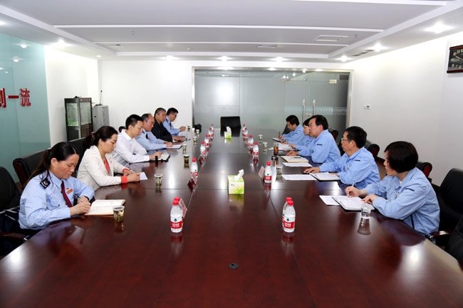 2017年5月3日上午,市國稅局總會計師郝戈、縣國稅局局長席文篤等一行到我公司調(diào)研生產(chǎn)經(jīng)營運行情況。集團公司總經(jīng)理郭峰、總會計師王尚友陪同。