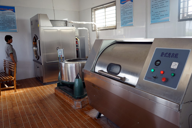 生產(chǎn)一線員工工作服臟得較快,有的在單位換洗,有的穿回家換洗,還有的懶于換洗,個(gè)別崗位由于工作環(huán)境較差,上班汗津津,下班臟兮兮,穿著不舒服,感覺不體面、無尊嚴(yán)。在管理提升、對(duì)標(biāo)學(xué)習(xí)活動(dòng)中,集團(tuán)公司工會(huì)受中信重工集團(tuán)管理經(jīng)驗(yàn)的啟發(fā),提出了建設(shè)洗衣房、為職工免費(fèi)洗衣的建議。李躍民董事長(zhǎng)在聽取匯報(bào)后,當(dāng)即拍板確定洗衣房建設(shè)方案,郭峰總經(jīng)理到現(xiàn)場(chǎng)查看后,確定先在一鋁、二鋁建設(shè)試點(diǎn),再在發(fā)電、鋁加工等單位推廣。工會(huì)、工程管理部、貿(mào)易公司經(jīng)過多次考察論證,從硬件設(shè)施到軟件管理,定方案、出措施,利用鋁業(yè)一公司門崗閑置房進(jìn)行土建、電氣、供水、供汽改造,經(jīng)過為期一周的緊張施工,洗衣房土建改造和設(shè)備安裝全部結(jié)束,共安裝70公斤滾筒式工業(yè)洗衣機(jī)、蒸汽烘干機(jī)和甩干機(jī)各1臺(tái),配備專用洗衣液和消毒液,對(duì)工作服統(tǒng)一編號(hào)、分類洗滌、烘干消毒,讓職工穿得干凈體面,工作開心舒心。