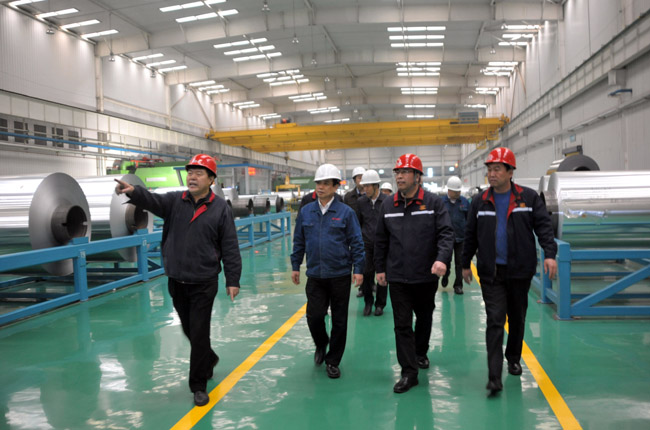 1月26日下午,中信重工機(jī)械股份有限公司董事長任沁新等一行6人到我公司實(shí)地考察萬基鋁加工冷軋、鋁箔、精整、分切生產(chǎn)線,李躍民董事長、郭峰總經(jīng)理等公司領(lǐng)導(dǎo)陪同考察,并出席了業(yè)務(wù)洽談會。